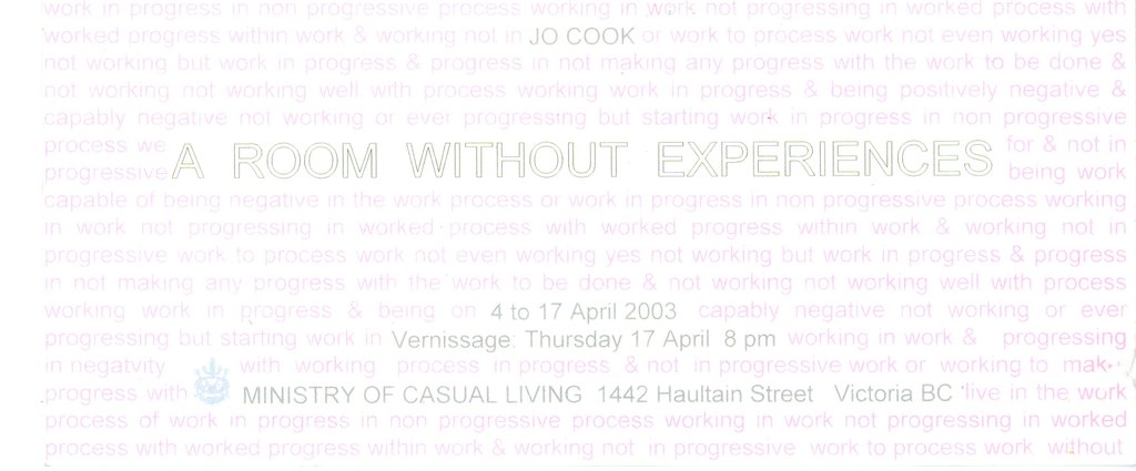 I think the gallery space as an agoraphobic relative who is afraid to leave the house. She is a room without experiences and has become dependent on me being the outside world in for her to learn about. During my residency at the Ministry I will be working with materials I find on the streets of the residential neighbourhood where the gallery is located. Nearby there is a grocery store, and a laundromat.