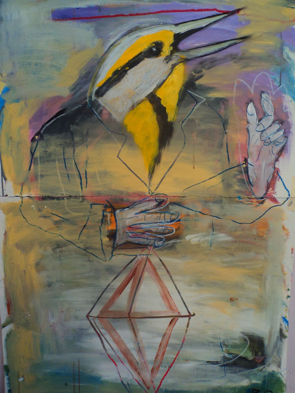 Vortex of Amulets is an immersive drawing/painting installation of works on paper that explore animal imagery, figurative icons, abstraction, found objects and words -similar to channel-surfing with a paintbrush, images and forms arise and dissolve in spontaneous layers of painterly possibilty.