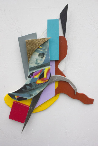 Upon relocating to Calgary in November 2015, Rachel and Mikhail observed the lasting TMC pieces standing guard around the city. Many have deteriorated and become mysteriously unrecognizable however the potential of the project remains strong. They started to make vivid paintings/sculptures out of salvaged wood and house paint, intending to screw them up on poles. Their process involves amassing a collection of cutout shapes, painting these shapes specific colour hues, and assembling the sculptural compositions with a nail gun. Each piece is a kind of visual poem manifested through a meditation on colour and form.