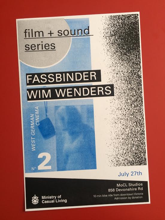 The second in a series of monthly open air film + music nights featuring avant-garde and experimental works by celebrated international directors, surprising local shorts from the archives and live sound from local musicians and DJs ... Artistically ambitious, socially critical, reacting to cultural and economic stagnation in the 60s; New German Cinema is born. Focusing on work from two of West Germany's most recognized directors, whose work still resonates today.