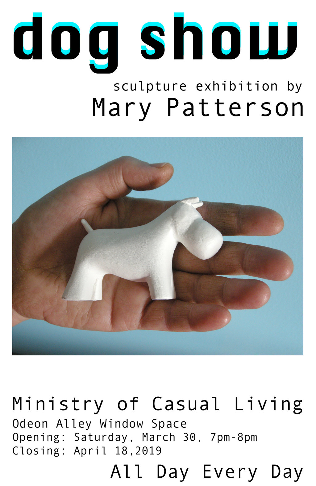 Dog Show: Mary Patterson Sat. March 30th 2019 - Thu. April 18th 2019 @ Ministry of Casual Living Window Gallery Free (All Ages) I wanted to have dog but my circumstances won't allow a furry sidekick. So made 18 miniature wood dogs that fit nicely in the condo and are pretty much easy care. Mar. 30, 2019 @ Ministry of Casual Living Window Gallery Mar. 30, 2019 @ Ministry of Casual Living Window Gallery