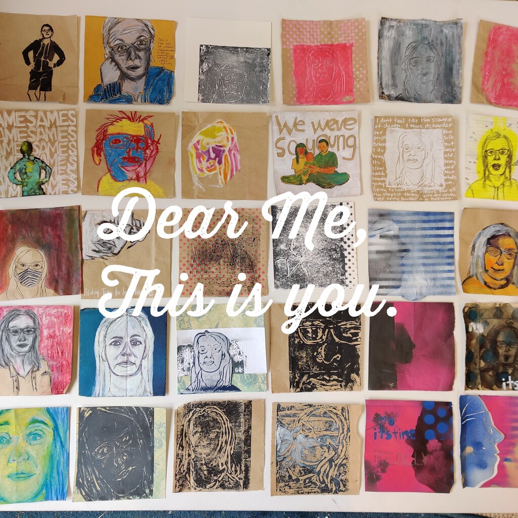 Then this year hit us all like a tidal wave and it was difficult to know how art making fit into this new landscape and especially this. Was I being completely narcissistic? The whole world is shifting and I'm drawing pictures of myself. But I persevered and lots of times it was awful. But that was okay, maybe even vital. Sometimes we have to do things badly in order to learn, right? With intense change, and the likelihood that we may never go back to the way it was, I think everyone is doing a little, or a lot of looking at who they are and how they will change going forward. I am then, as evidenced in these many pieces, very much a work in progress.