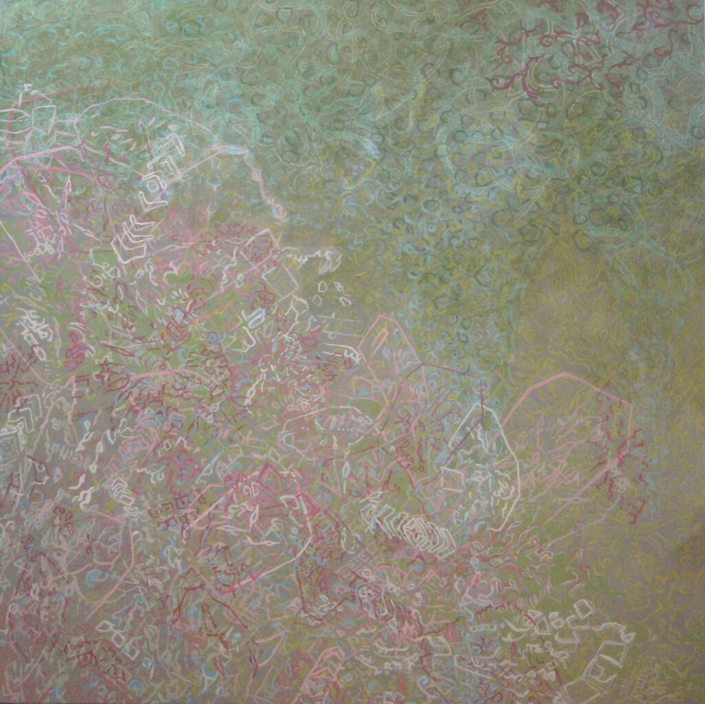 My paintings reflect my keen interest in pattern. It is a method of communication, adorning buildings, housewares, clothing and bodies since prehistory – an intriguing part of human expression.