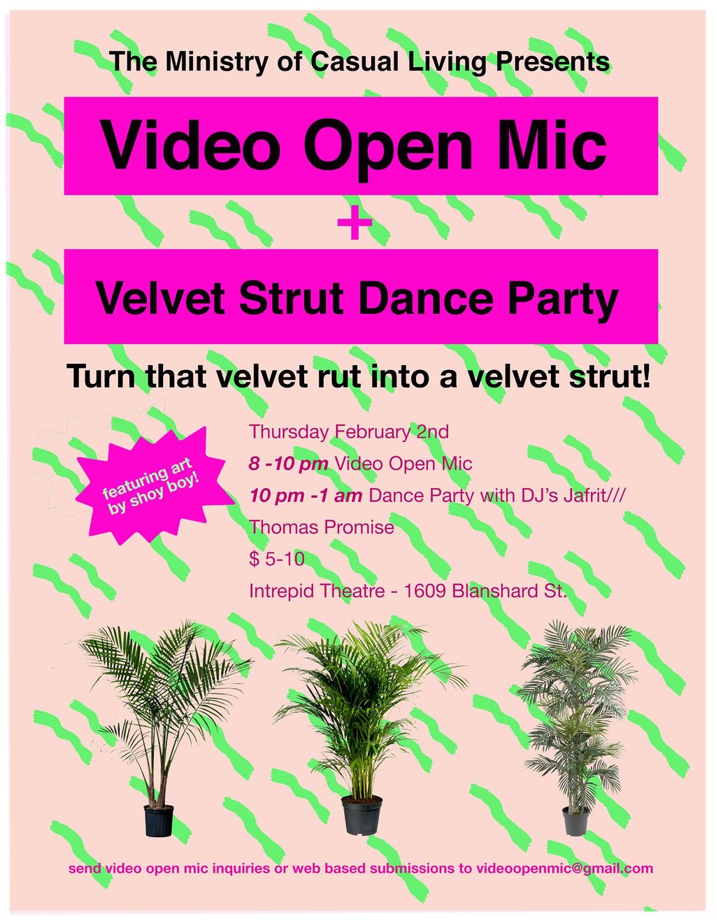 Video open mic and velvet strut dance party