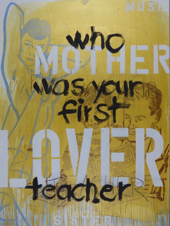 In this particular painting, I enlarge the role of the model. She still encompasses the ancient notion that the first art teacher was female. Now, she is also instrumental in the life of a youngster discovering the ambition of becoming an artist.